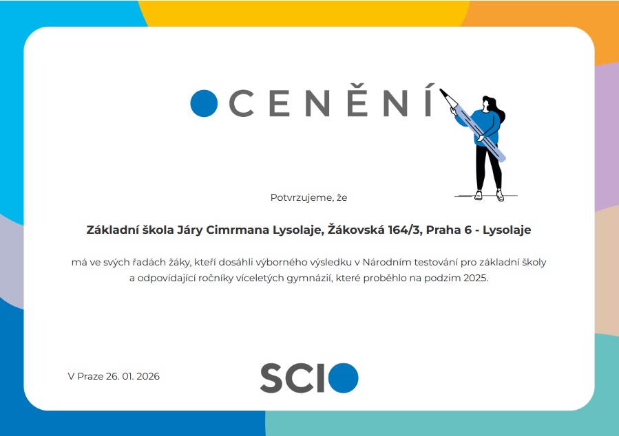 Testování -SCIO, CERMAT… Výsledky SCIO 2025, 9. třídy Výsledky SCIO 2022, 9. třída Výsledky CERMAT 2024 Výsledky CERMAT 2023 Výsledky CERMAT 2022 Výsledky CERMAT 2021